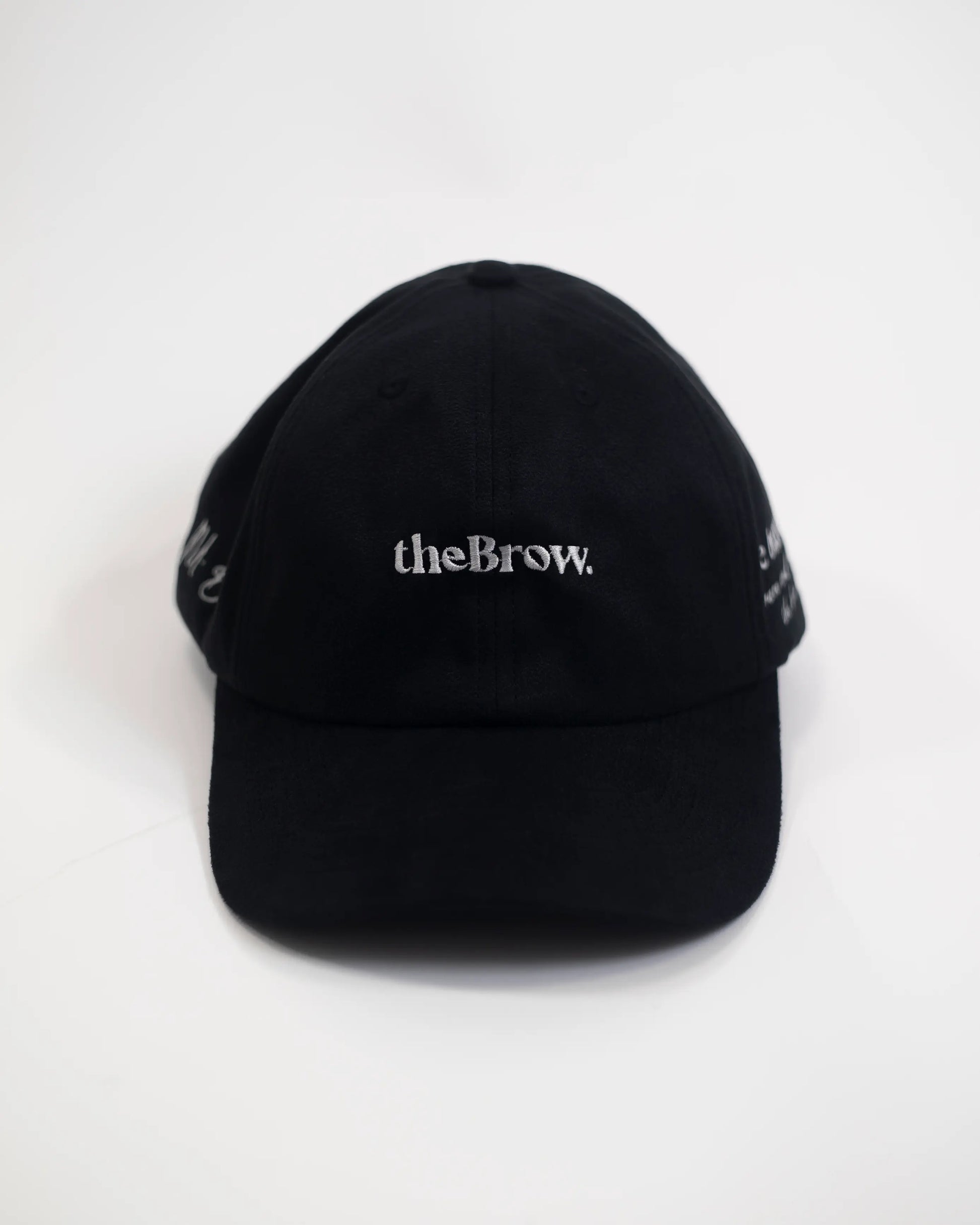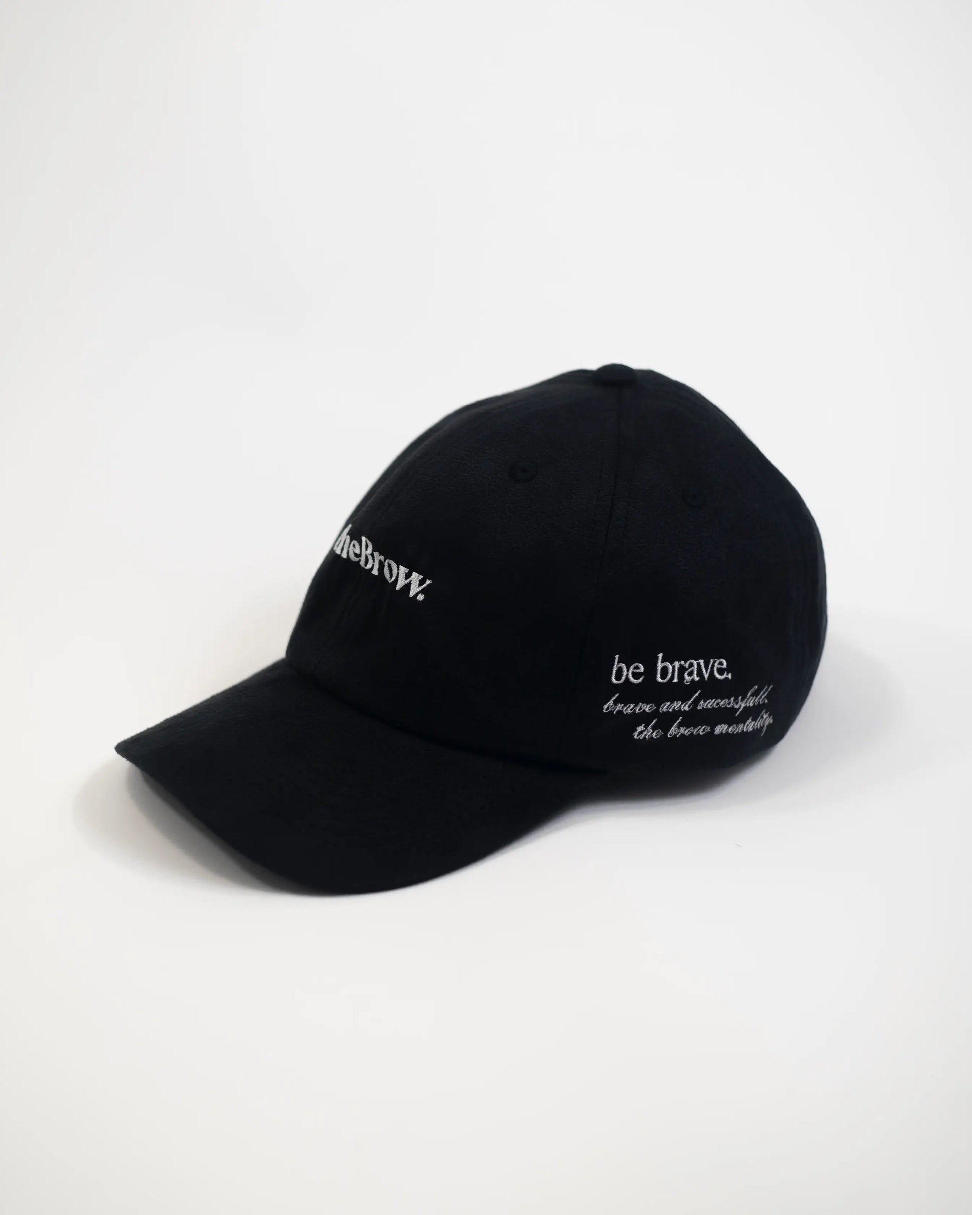 Produzido com tecido premium de toque macio e acabamento impecável, oferece conforto duradouro e um ajuste preciso com fecho metálico ajustável na parte traseira. Na frente, o logo theBrow. bordado com precisão em branco entrega contraste e identidade. Na lateral, a assinatura "M. Brow" e a mensagem "be brave. brave and successful – the brow mentality" reforçam o mindset da marca: coragem, ambição e elegância em movimento.
